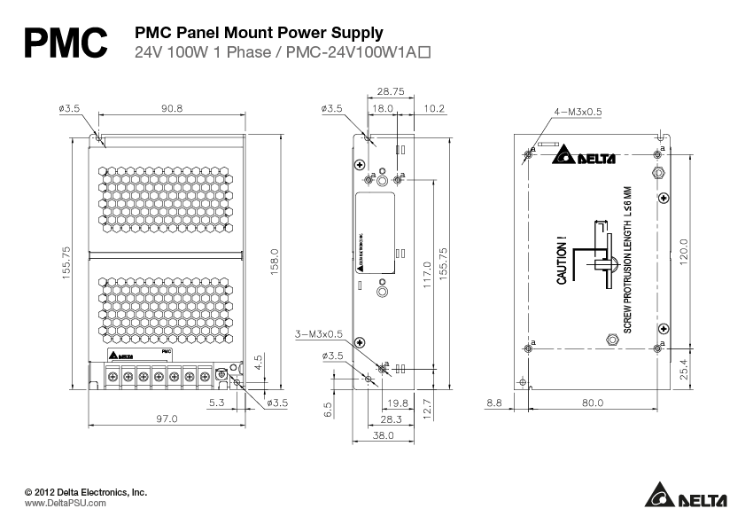 Джерело живлення Delta серії PMC для монтажу на панель має номінальну вихідну напругу 24 В та широкий температурний діапазон від -10 °C до +70 °C. Сучасна конструкція розроблена в такий спосіб, щоб витримувати жорсткі промислові умови експлуатації. Відмінною особливістю продукту є легкий алюмінієвий корпус, який здатний витримувати удари та вібрацію відповідно до стандарту IEC 60068-2. Серія PMC також забезпечує захист від перенапруги та перевантажень. Завдяки конструкції з широким діапазоном вхідної напруги від 125 до 375 В постійного струму, пристрій підходить для застосування у всьому світі. І найголовніше, це високоякісне джерело живлення, яке доступне за невелику ціну.